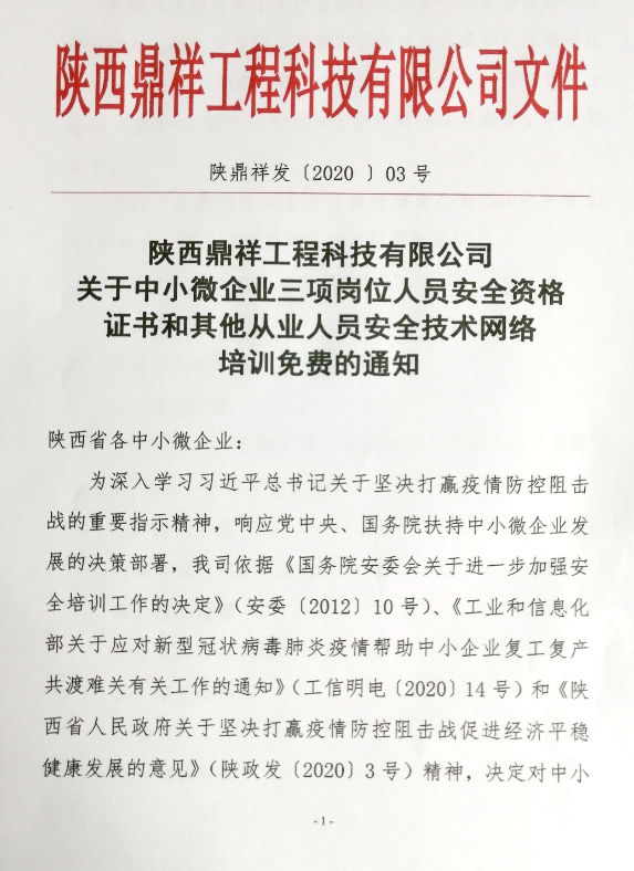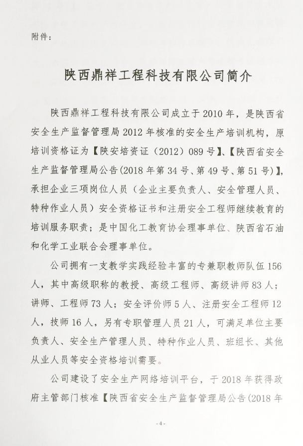 陜西鼎祥始終致力于“以安全科學技術為核心,國家安全生產法律法規為準則,企業安全文化為靈魂,創新安全培訓,提升安全技能,為生命安康護航”。通過與政府主管部門、企業之間的協同效應,提升安全培訓效果!促進企業安全文化建設不斷發展!我們將孜孜追求、不懈努力,提升從業人員安全意識與安全技能,為客戶創造更為安全的生產條件。