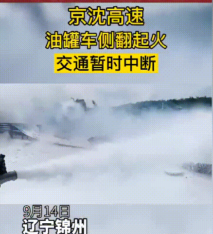 京沈高速遼寧錦州段沈陽方向452公里處一輛油罐車和廂貨車相撞起火