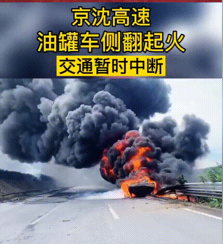京沈高速油罐車側翻起火