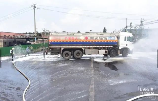 此次處置,先期抵達的松林油庫專職消防隊和沾益區湖西路消防救援站已經鋪設水帶對油罐車進行降溫,并利用泡沫對泄漏的柴油進行了先期覆蓋處置。期間,曲靖特勤消防救援站、消防支隊全勤指揮部、交警部門、路政部門相關人員也先后抵達現場,按照處置責任分工:一組消防員協助交警做好現場警戒,對事故路段進行交通管制,禁止車輛通行;二組消防員對事故車輛進行斷電,防止電瓶漏電引發火災,同時禁止事故現場人員使用移動通訊工具、吸煙;三組消防員鋪設水槍陣地,準備使用開花水槍及泡沫繼續對罐體、油箱及泄漏的油料進行冷卻和稀釋,降低油蒸汽濃度,防止濃度過高遇明火燃燒和爆炸;四組消防員利用附近沙土對路面泄漏油類進行覆蓋處理。